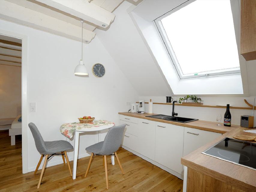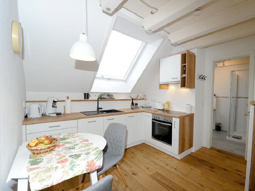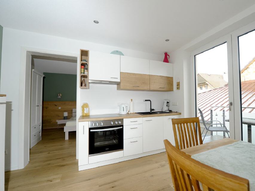 - gemütliche Wohnküche mit Backofen, Kühlschrank mit Gefrierfach, Waschmaschine,