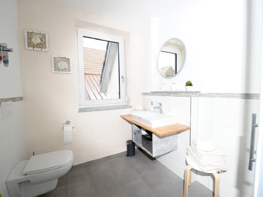 - Zweites Bad mit Dusche, WC und Fön im OG