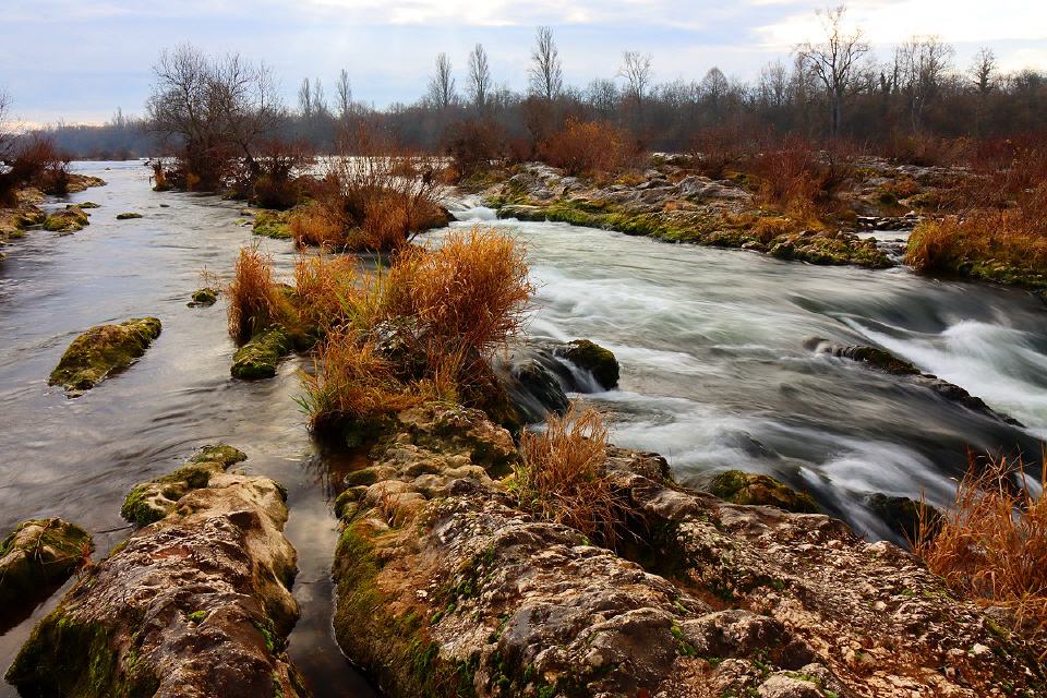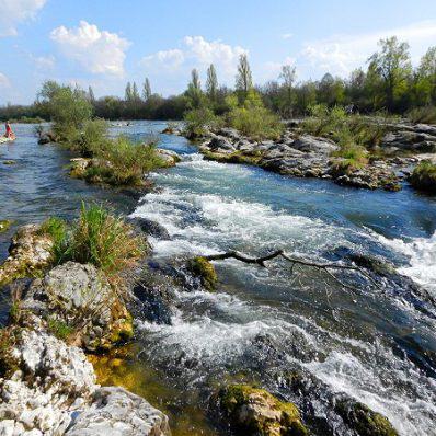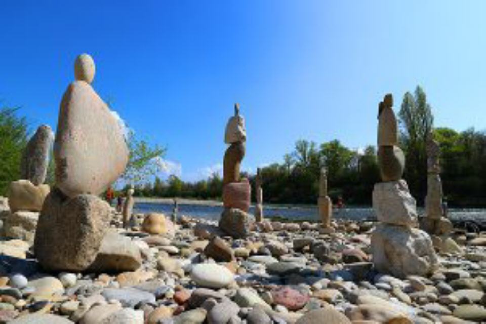 Westlich von Efringen-Kirchen zeigt sich der Rhein von einer ganz anderen Seite. Mitten im Altrhein liegen unzählige Inseln, Felsblöcke und Sand- sowie Kiesstrände. Waren die Isteiner Schwellen früher eine Gefahr für die Schifffahrt, locken sie heute Urlauber und Erholungssuchende an.