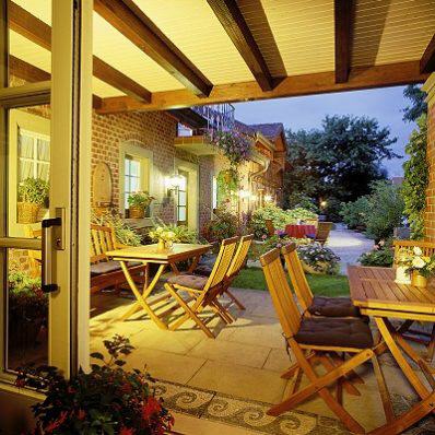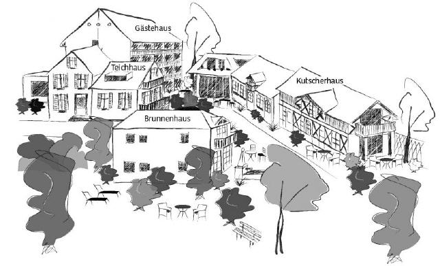 Das Hotel “Zur Krone” und die Landhäuser “Kutscher- und Brunnenhaus” liegen in ehemaligen Bauerngärten. Alle drei Häuser gruppieren sich um eine grüne Oase mit Teich, großer Wiese und altem Baumbestand. Dieser Garten mit Tischtennis, Sandkasten und viel Freiraum ist nicht nur für die jungen Gäste das Herzstück des Hotels “zur Krone”. Nach einem abwechslungsreichen Tag ist die Kaminstube im Kutscherhaus der richtige Ort zum gemütlichen Beisammensein und Entspannen.