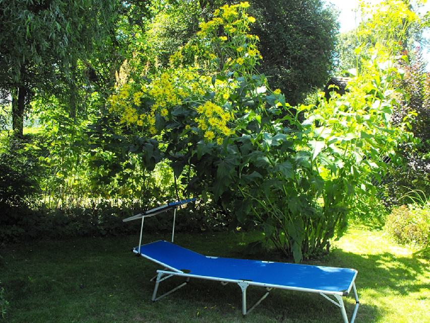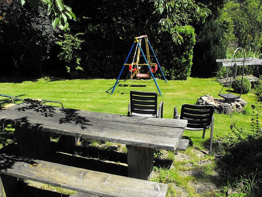 Genießen Sie den Abschluss eines erlebnisreichen Tages im schönen Garten zwischen Blumen und schattenspendenden Bäumen und Büschen. Er misst rund 1000 qm, verfügt über Liegestühle und Kinderspielgeräten. Da wird selbst der Tagesabschluss zum entspannenden Erlebnis.