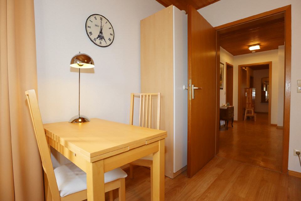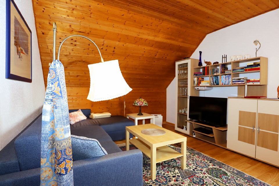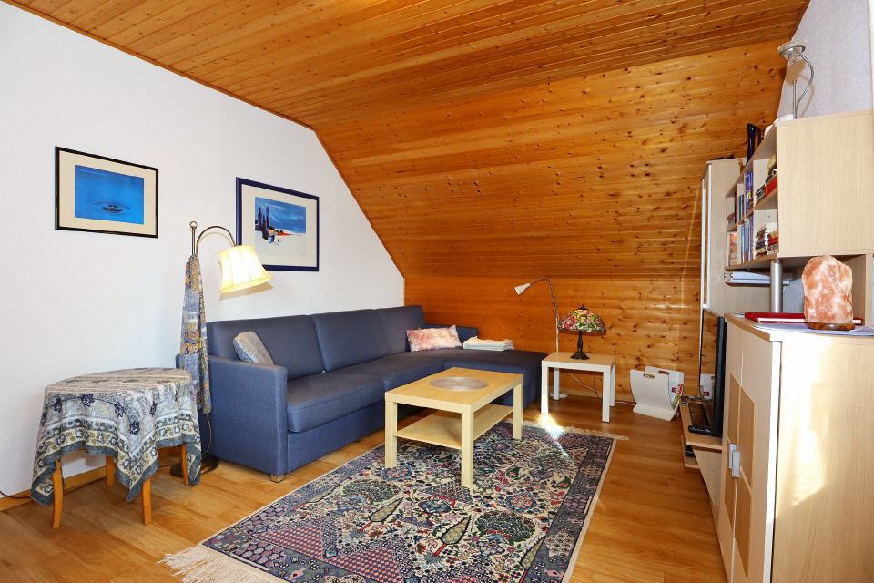 Die helle, geräumige (62 qm) Nichtraucher-Wohnung im Dachgeschoss liegt in ruhiger Lage mit ländlicher Umgebung und ist für 2 bis 4 Personen geeignet.