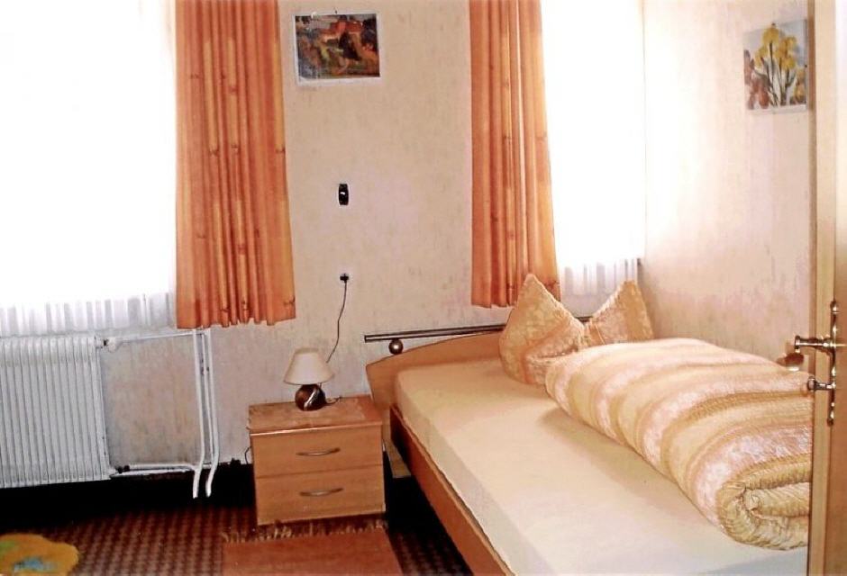 4x Einzelzimmer mit Etagendusche, Ausstattung: Etagen-WC, Etagenbad, Etagendusche, Kinderbett, Nichtraucherzimmer, Sitzgelegenheit, Zustellbett möglich, Überlanges Bett (mind. 2 Meter)