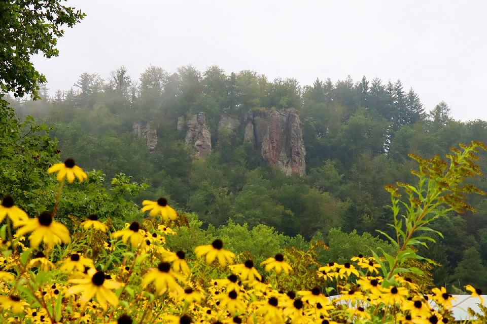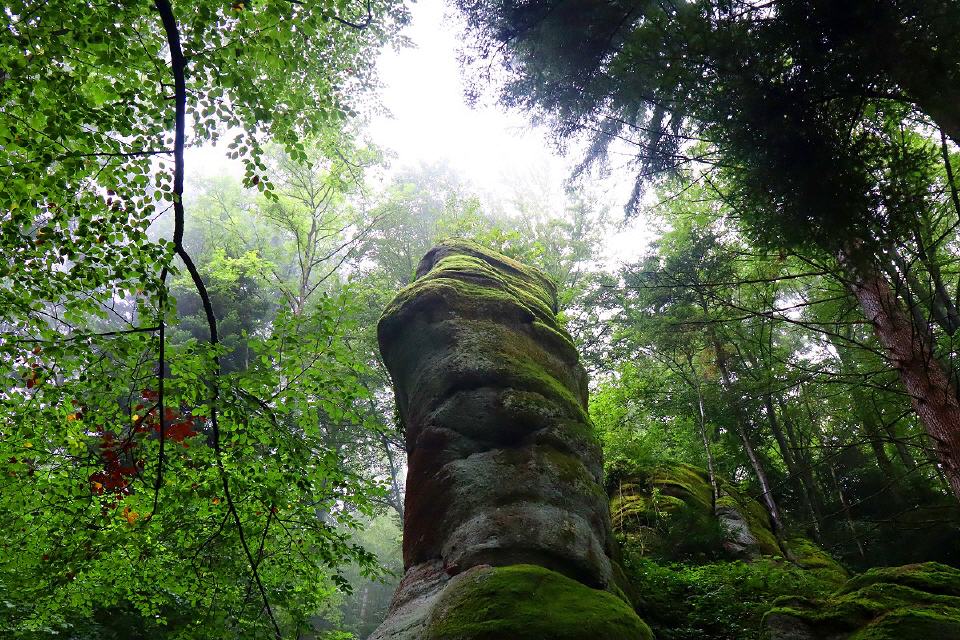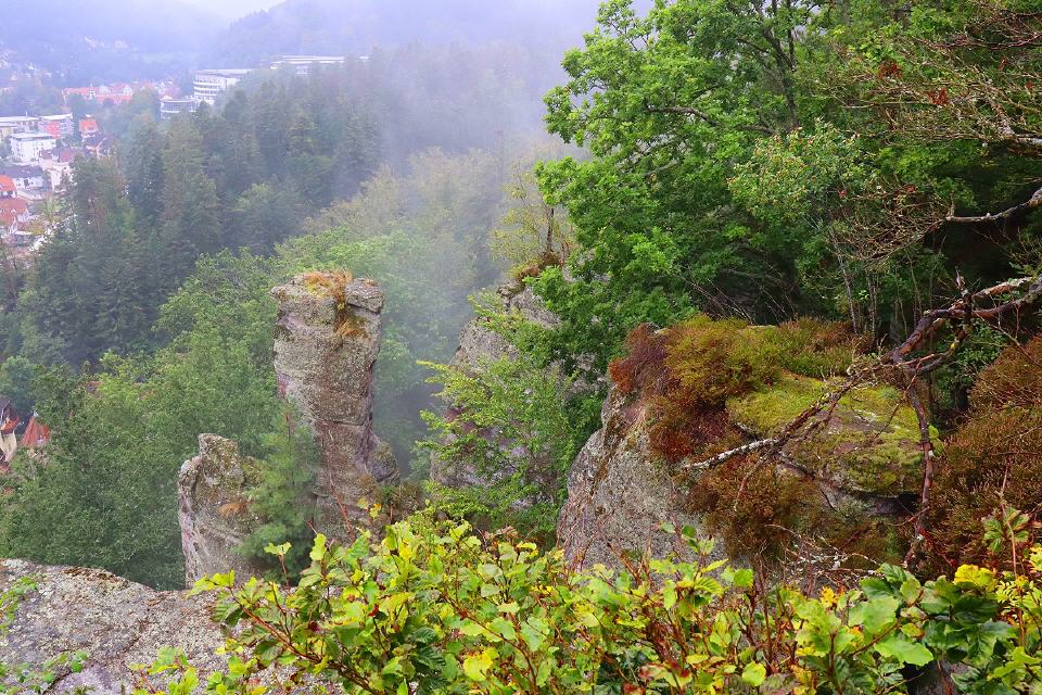 Die imposanten Falkensteinfelsen in Bad Herrenalb sind sowohl beliebtes Ausflugsziel für Wanderer und Kletterer als auch ein markantes landschaftliches Wahrzeichen der Stadt.