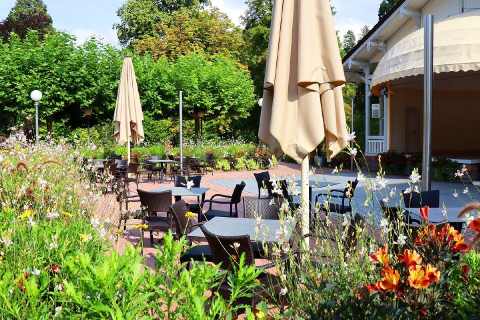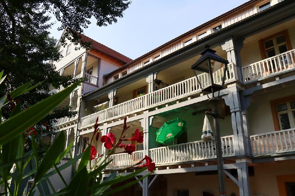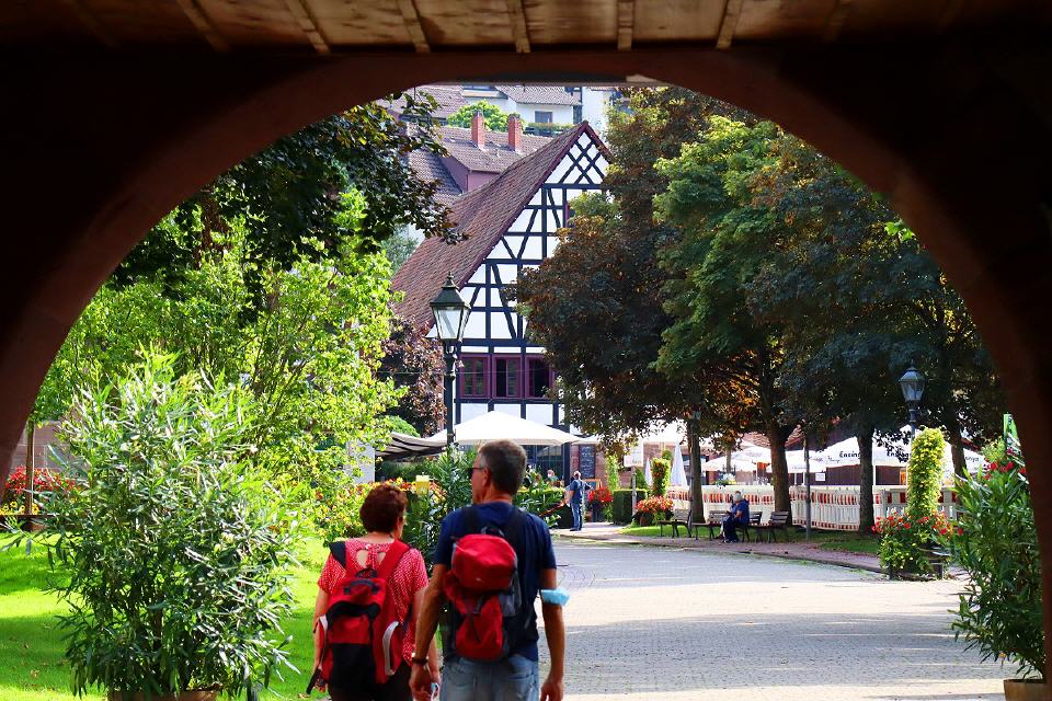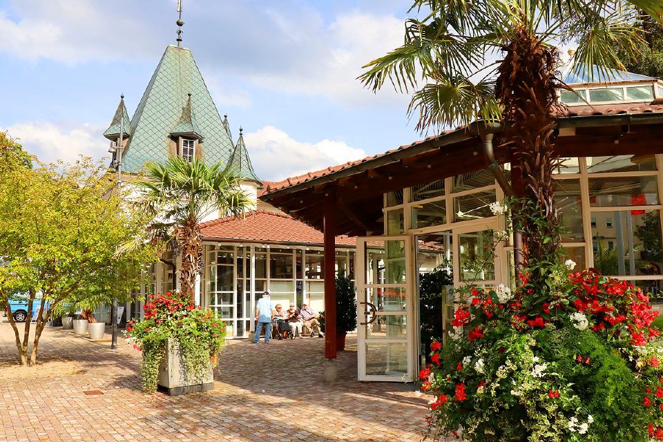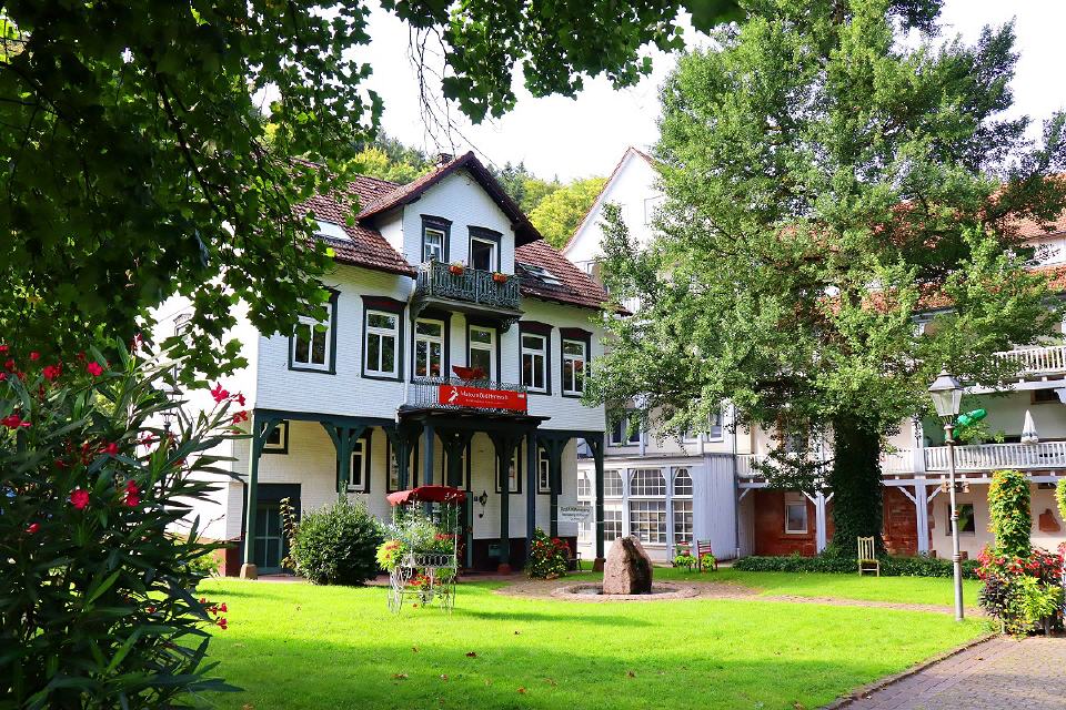Wenden Sie sich jetzt zum Torbogen, der von einem steinernen Klosterbruder bewacht wird. Der Bogen führt unter dem Rathaus hindurch zu einem kleinen Stadtplatz, der von der Klosterschänke und Mönch’s Posthotel optisch bestimmt wird. Wenn Sie die Strasse queren, sind Sie sofort im Kurpark, wo Sie bereits den spitzen Giebel des Kurhauses sehen. Dort können Sie lesen, sich entspannen und den Klängen des Kurensembles lauschen.