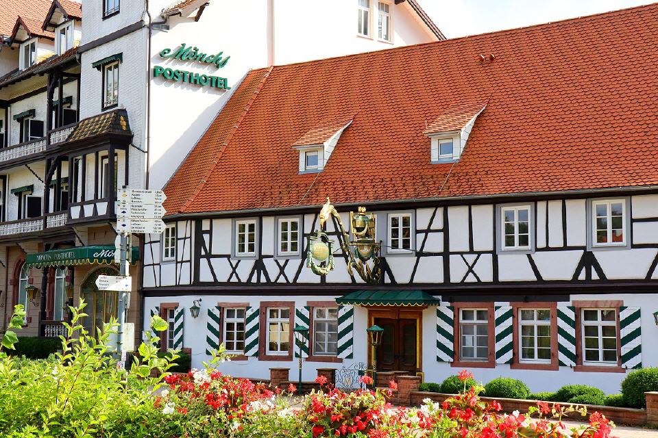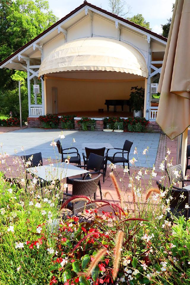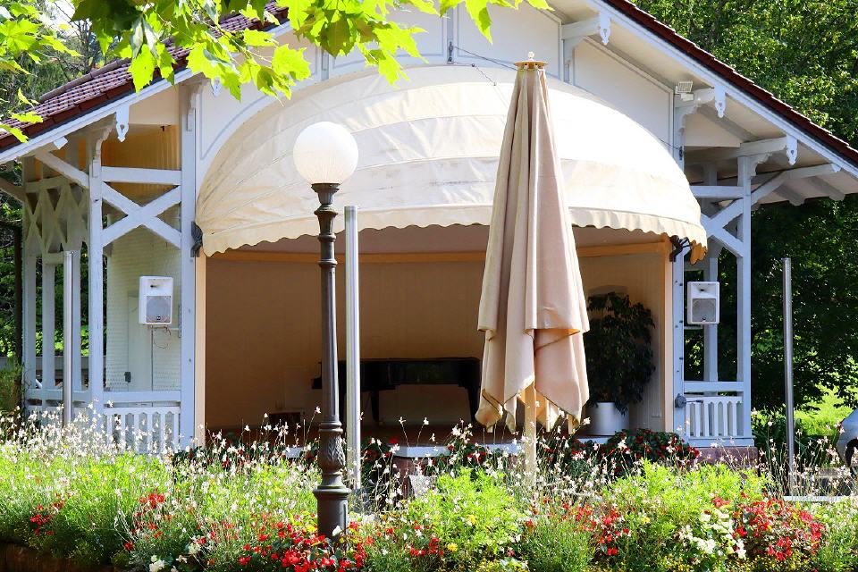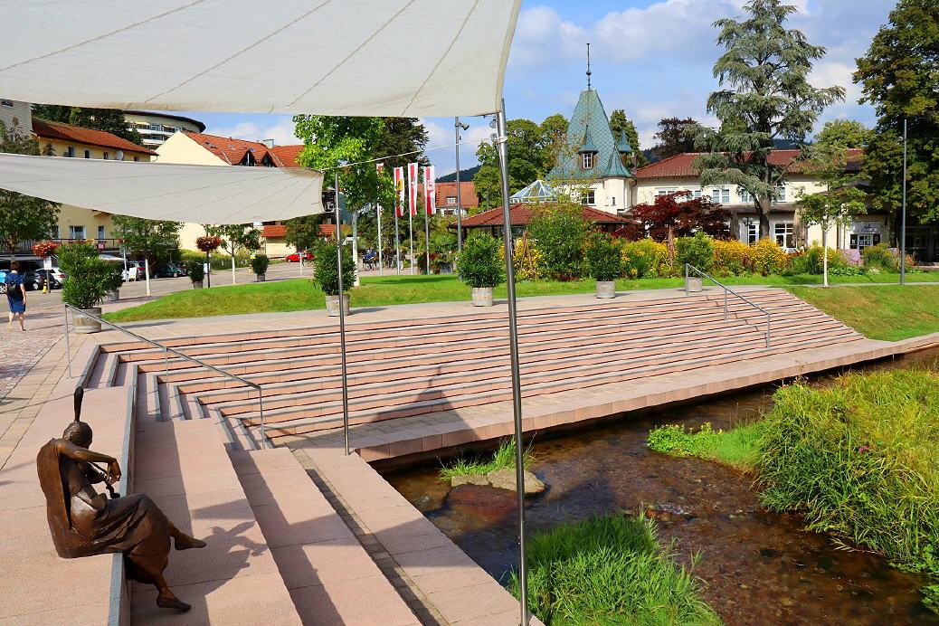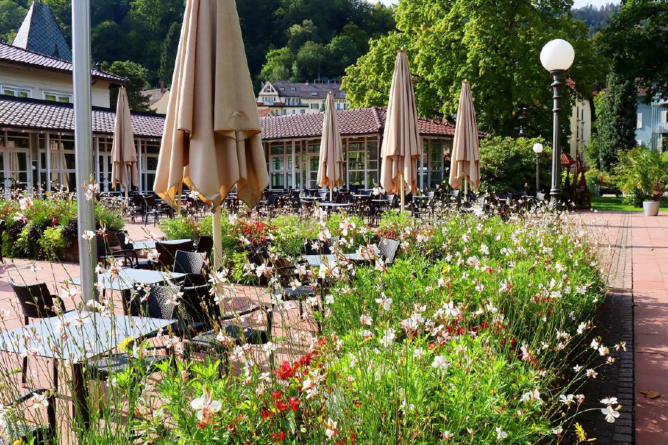 Wenden Sie sich jetzt zum Torbogen, der von einem steinernen Klosterbruder bewacht wird. Der Bogen führt unter dem Rathaus hindurch zu einem kleinen Stadtplatz, der von der Klosterschänke und Mönch’s Posthotel optisch bestimmt wird. Wenn Sie die Strasse queren, sind Sie sofort im Kurpark, wo Sie bereits den spitzen Giebel des Kurhauses sehen. Dort können Sie lesen, sich entspannen und den Klängen des Kurensembles lauschen.