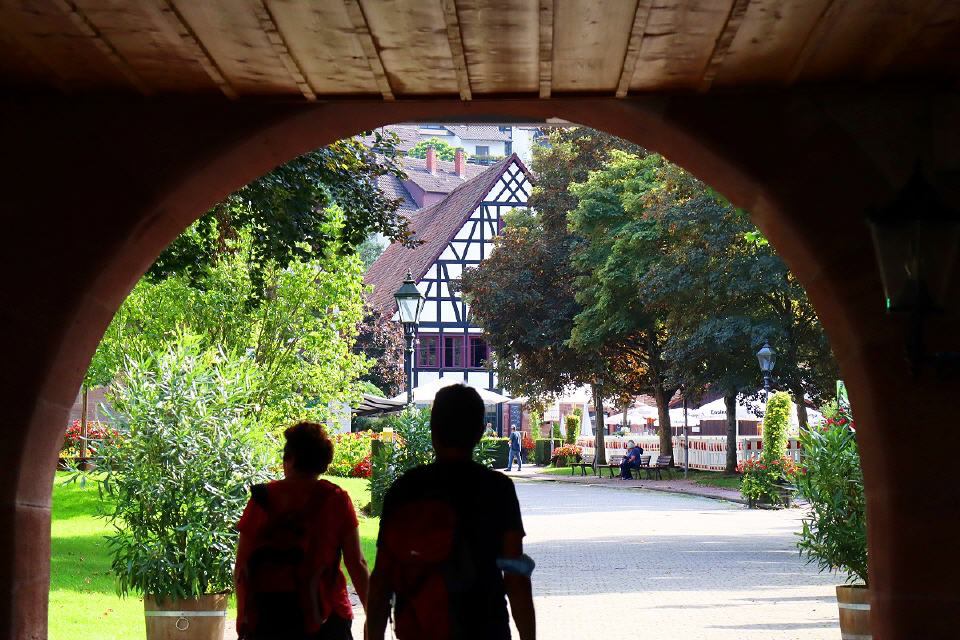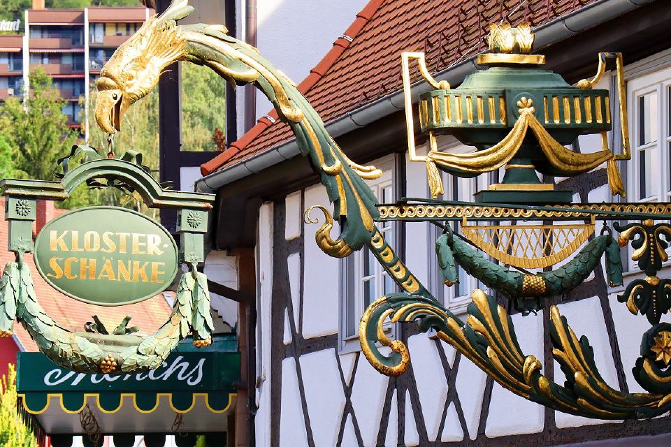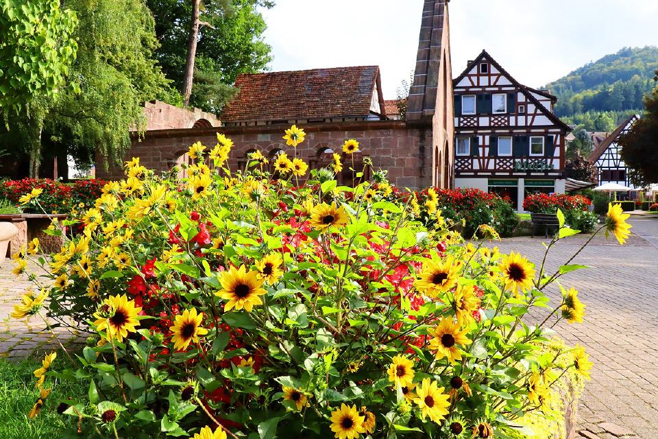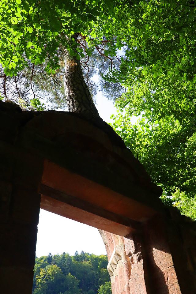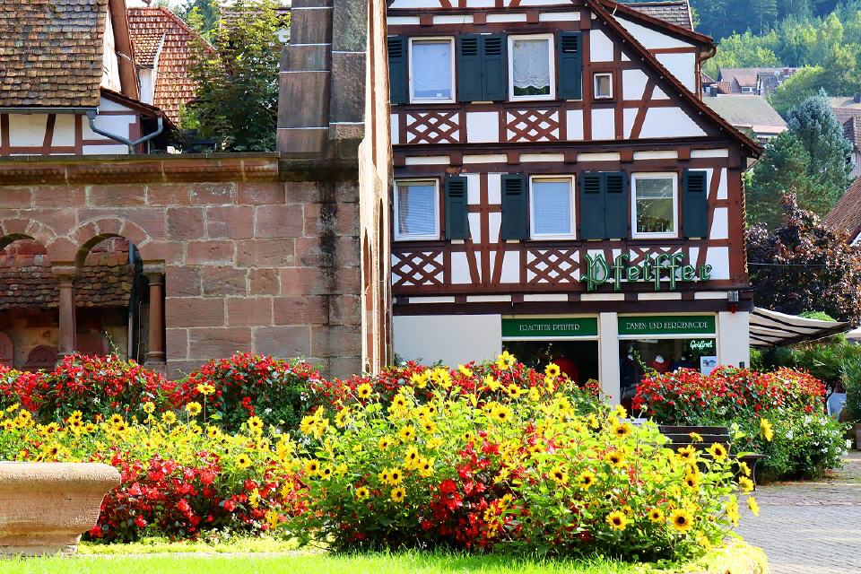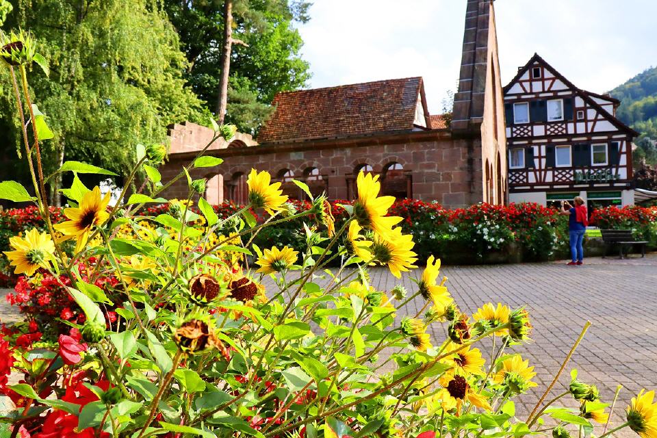 Von ihr stehen nur noch die Mauern, der Blick geht, von keinem Dach behindert, direkt zum Himmel. Auf einer der Mauern hat vor 175 Jahren ein Baum seinen Platz bezogen – ohne Kontakt zum Erdreich. Da steht er heute noch, groß und prächtig geworden, und ist ein viel fotografiertes Kuriosum. Rund um das „Paradies” sehen Sie die charakteristischen Fachwerkhäuser. Besonders schön die „Klosterscheuer” des Klosters, in dem die Bauern ihre Erntegaben zu leisten hatten. Heute ist es ein Restaurant mit viel Ambiente.