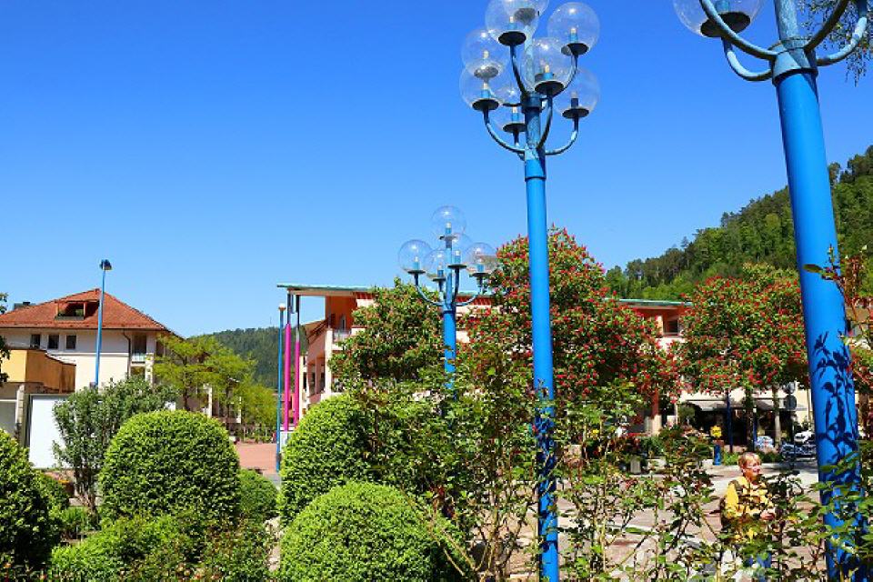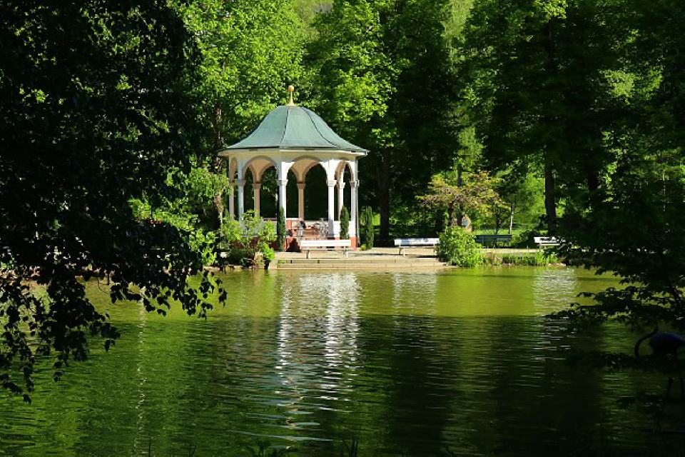Kurpark. Eine grüne Oase der Ruhe ist der Kurpark im Herzen der Kurstadt. Idyllisch strömt die Nagold durch ihn hindurch. Flanieren Sie mit einem Glas Liebenzeller Heilwasser die Wege entlang, schauen Sie den Paaren beim Tanztee zu, lassen Sie sich auf dem Planetenweg über unser Sonnensystem und im neuen Apothekergarten über Heilkräuter informieren. Auch die lieben Kleinen haben ihre Freude auf dem Spielplatz. Betätigen Sie sich bei einer Runde Minigolf oder lauschen Sie einfach auf einer Bank dem beruhigenden Rauschen der Fontäne des Sees – der Park mit seinem dichten grünen Laubdach und seinen schön angelegten Beeten lädt stets ein zum Spazieren und Verweilen. Hier kann man aufatmen – und die gute, reine Schwarzwaldluft einatmen.