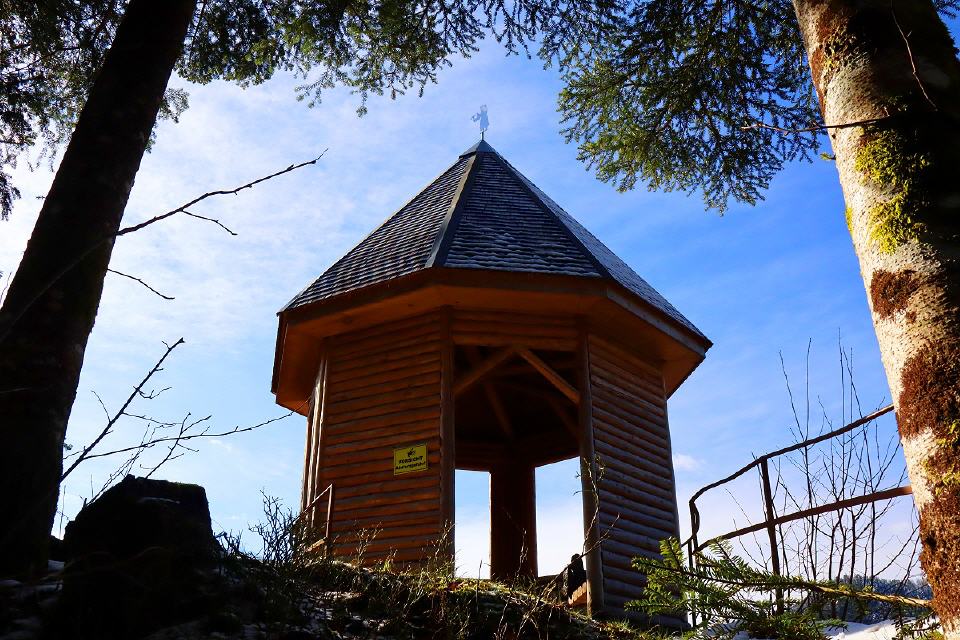 Über Serpentinen erreicht man die Minigolfanlage im Tal, dort überquert man das Flüsschen Wolf und die Landesstraße L96 und erreicht nach einem kurzen, knackigen Anstieg, der beim Gasthof "Klösterle-Hof" beginnt, die „Steig“. Der Weg bringt den Wanderer an zahlreichen und kleinen, erfrischenden Bergwasserquellen vorbei zum Burgbachfelsen und zum Burgbachwasserfall. Von hier aus gelangt man über einen Holzabfuhrweg zurück zum Ausgangspunkt, dem Parkplatz am Kurhaus.