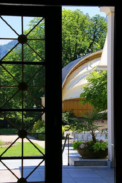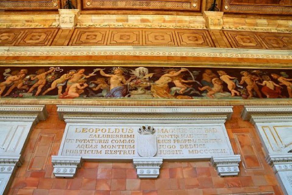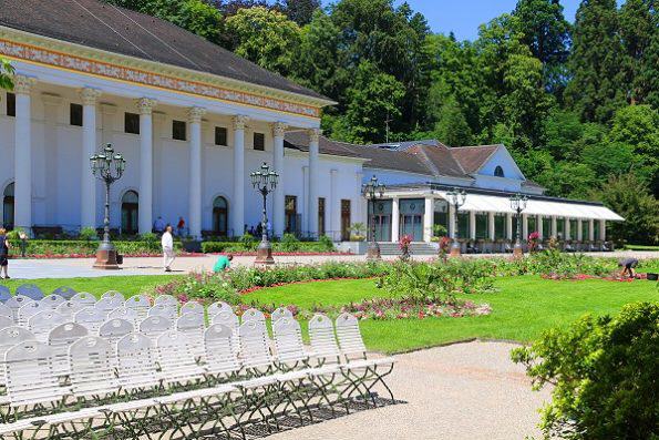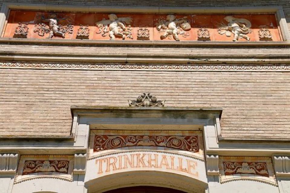 Vom Kurgarten erstreckt sich in einem Bogen längs der Oos die Kaiserallee. An ihr liegt hinter riesigen Platanen die Trinkhalle. Ein Hauch von südlichem Flair überkommt den Besucher beim Anblick dieses Gebäudes. Der Zauber von Licht und Schatten gibt dem 9o Meter langen Wandelgang mit den korinthischen Säulen und den 14 großflächigen Wandgemälden badischer Sagen zu jeder Jahreszeit seine vollendete besondere Schönheit.