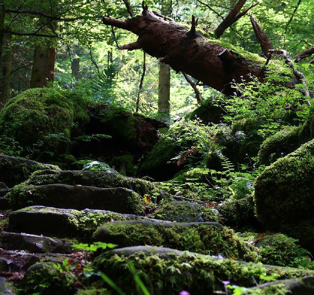 Sie ist steil und wild. Ein abenteuerlicher Wanderpfad, auf dem zahlreiche Steintreppchen den Aufstieg erleichtern, führt von Ernstmühl an der Nagold, einem Ortsteil der Stadt Calw, hinauf in Richtung Ottenbronn. Durch die Schlucht schlängelt der Brombach. Während die ersten 300 Meter noch recht einfach zu gehen sind, beginnt das Abenteuer ab der Holzbrücke. Danach wird es etwas wilder, vermooster und ziemlich spannend. Hin und wieder bahnt sich das Sonnenlicht durch die Blätter auf den Bachgrund und die Felswände.