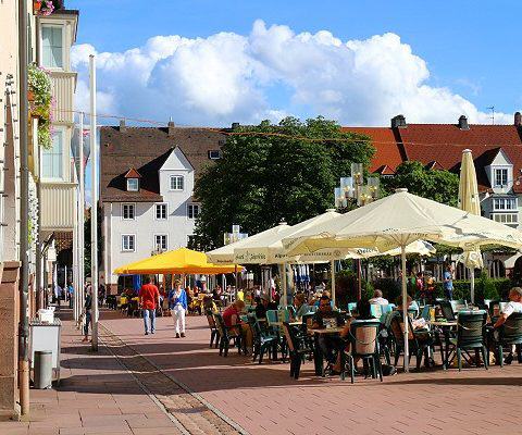 Am besten beginnen Sie Ihren Stadtrundgang am Kurhaus / Kongresszentrum am Promenadeplatz. Schauen Sie hier zuerst ins Kurhaus und bewundern Sie die wechselnden Ausstellungen. Oder genießen Sie Ruhe und Natur mitten in der Stadt im angrenzenden Kurgarten. Besuchen Sie dann den größten Marktplatz Deutschlands mit seinen Wasserfontänen, gehen Sie am Büttnerhaus vorbei – heute befinden sich dort die Geschäftsräume des ZÄN (Zentralverband der Ärzte für Naturheilverfahren) – in die Loßburger Straße. Hier finden Sie, wie auch rund um den Marktplatz, viele Einzelhandelsgeschäfte und ein Kaufhaus.