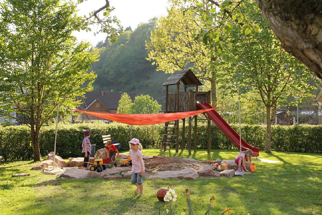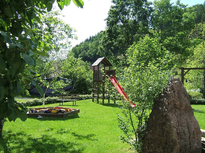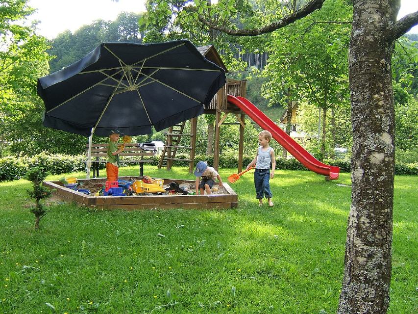 - Für unsere kleinen Gäste: Spielplatz mit Sandkasten, Rutschbahn, Schaukel und Trampolin