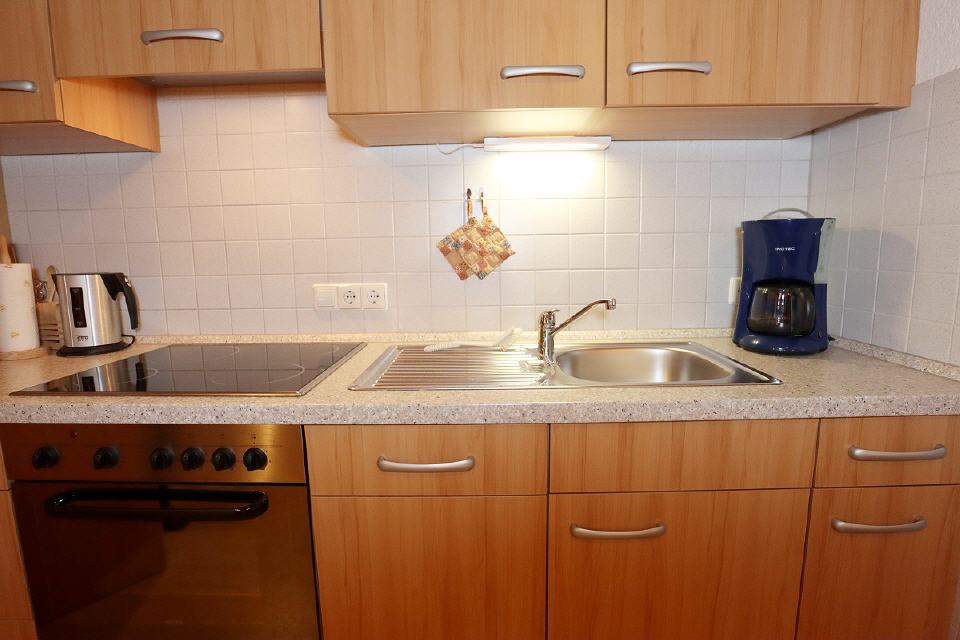 - Die Ferienwohnung ist sind komplett ausgestattet mit Induktionskochfeld, Backofen, Spülmaschine, Kaffemaschine, Toaster und Wasserkoche.