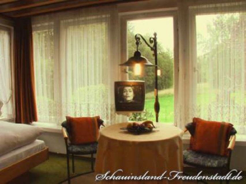 In unserem stillvollem Haus mit Flair und romantischem Ambiente finden Sie Ruhe und Erholung. Morgens erwartet Sie ein reichhaltiges Frühstück in unserem gemütlichen Frühstücksraum. Aus jedem Zimmer hat man einen herrlichen Ausblick auf Freudenstadt und den Park. Unser Gästehaus ist ein Insidertipp von Marco Polo Schwarzwaldführer.