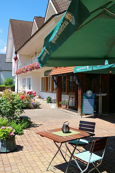 In unseren hellen Gasträumen erwartet Sie eine herzliche Gastfreundschaft und feine Gerichte aus regionaler Küche, sowie saisonorientierte Spezialitäten. An warmen Tagen verwöhnen wir Sie gerne auf unserer sonnigen Gartenterrasse mit einem frisch gezapften, heimischen Bier oder einem guten Tropfen aus unserem Weinkeller. Auf Wunsch richten wir Ihnen gerne ein leckeres Barbecue an. Öffnungszeiten von 15 bis 24 Uhr, Küche 17 bis 20 Uhr, Sonntagmittag 11.30 bis 13.30 Uhr, Mittwoch Ruhetag.