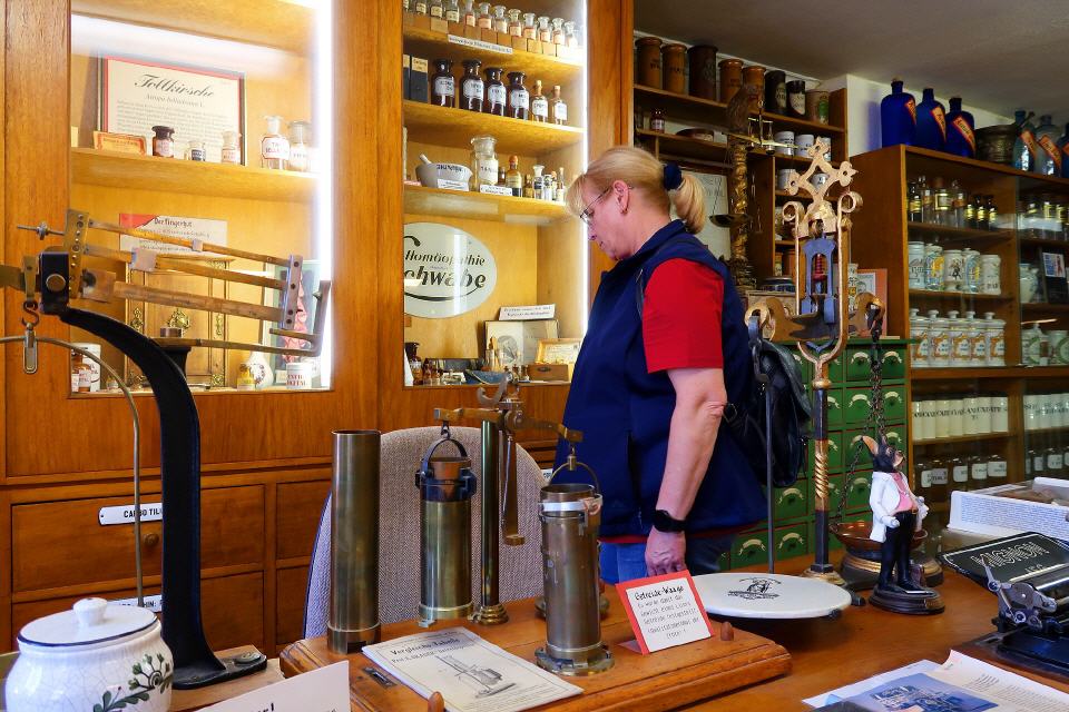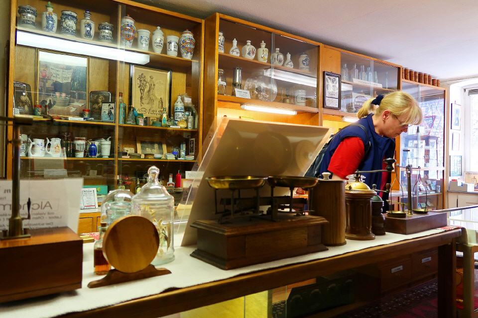 Das Apothekenmuseum ist aus der ehemaligen Rats-Apotheke am Marktplatz hervorgegangen, die bereits 1837 gegründet worden war. 1989 wurde sie in ein Museum umgewandelt. Es ist heute das größte private Apothekenmuseum Europas und präsentiert in der Originaleinrichtung die Geschichte der Apotheke. Die sehenswerte Offizin aus der Biedermeierzeit wird ergänzt durch Einblicke in die Arbeitswelt früherer Apotheker-Generationen im Labor und im Arzneikeller. Eine kombinierte Destillationsanlage stellt sich im Arzneikeller dar. Sie vermittelt gut den ungeheuren Arbeitsaufwand, der früher in Apotheken zur Herstellung von Destillaten, Abkochungen, Aufgüssen und Extrakten nötig war.