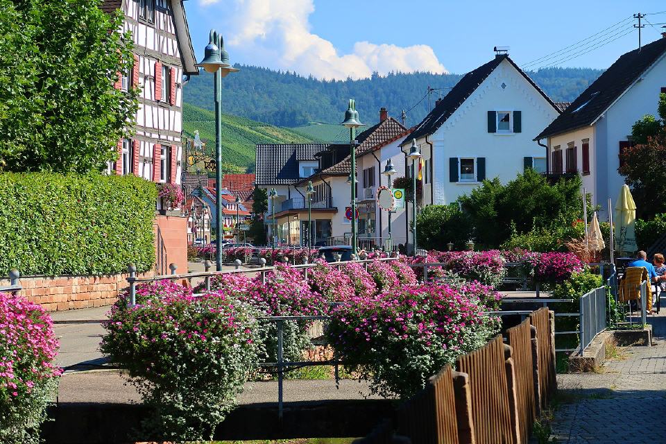All dies macht den Charme Durbachs aus. Üppiger Blumenschmuck an Fachwerkhäusern, romantische Dorfbrücken, immerhin 35 an der Zahl, und viele warme Sonnenstunden im Jahr verwöhnen den Gast und laden ein, wieder zu kommen… ins goldene Tal.