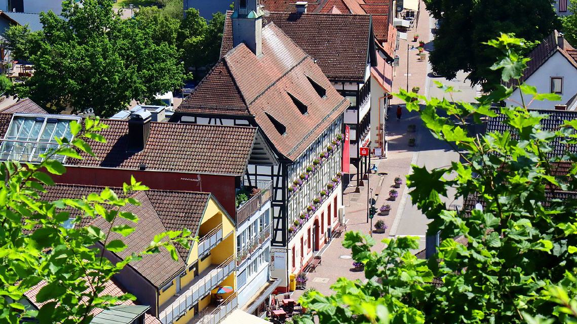 Später, etwa um 1220, erhob sich dann auf der beherrschenden Bergnase die Burg Husen zum Schutze der Handelsstraße und dem in den Tälern betriebenen Silberbergbau. Dann entstand unter der Feste die Stadt Hausach, die erstmals 1259 als “stat” urkundlich Erwähnung fand. Zwischen den beiden fürstenbergischen Amtsstädtchen Haslach und Wolfach hatte Hausach, obwohl auch etwa 500 Jahre unter dem Zepter der Fürstenberger, keinen leichten Stand. Dazu kam noch die strategische Lage an der Talenge und der Abzweigung ins Gutachtal, die Feinde anzog und mit ihnen Plünderung, Brandschatzung, Zerstörung, Seuchen, Hunger und Tod. Nur die Zollstätte brachte etwas Geld in die meist dürftig gefüllte Stadtkasse.