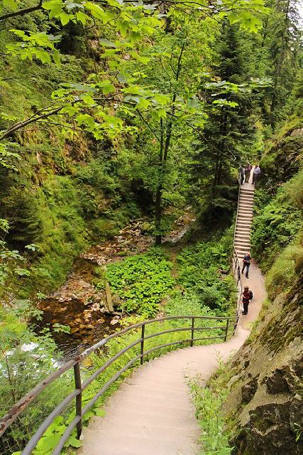 Es wurde ein bis zu zwei Fuß breiter Weg angelegt, wobei die Felsabstürze bei den sieben Fällen mit Leitern überwunden werden mussten. Dies war für Wanderer und Touristen natürlich sehr abenteuerlich, aber auch recht gefährlich. Nachdem die Erschließung und Durchsteigung mit Leitern bekannt geworden war, interessierte sich auch die großherzogliche Hofkammer in Karlsruhe dafür. Sie stellte 1842 insgesamt 100 Gulden zur Verfügung, um einen breiteren und sicheren Weg für die Allgemeinheit anzulegen. Treppen ersetzten die Leitern, gefährliche Stellen wurden mit einem Geländer gesichert.