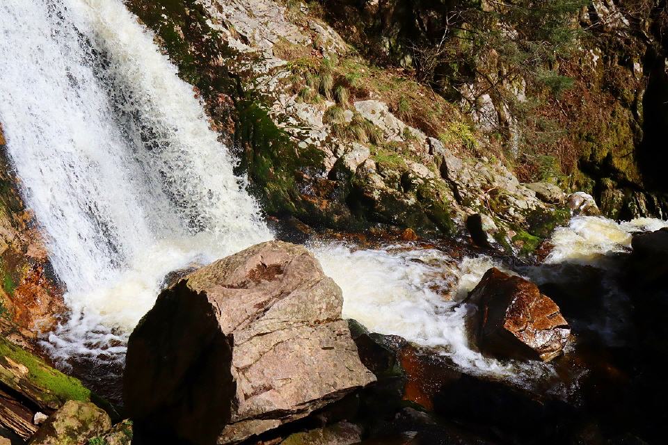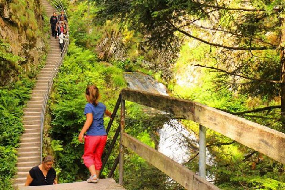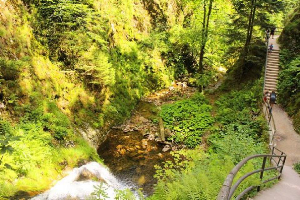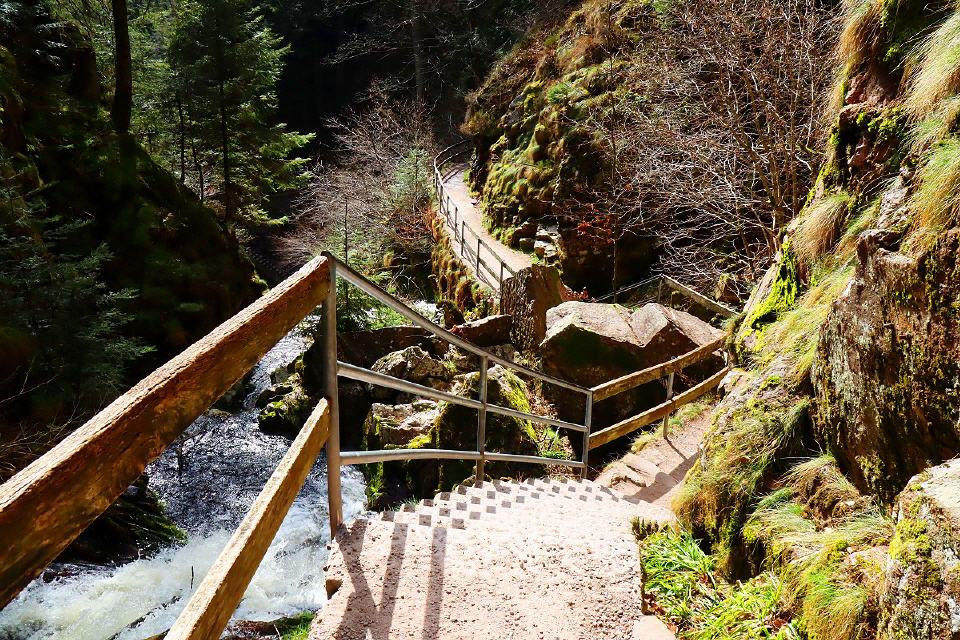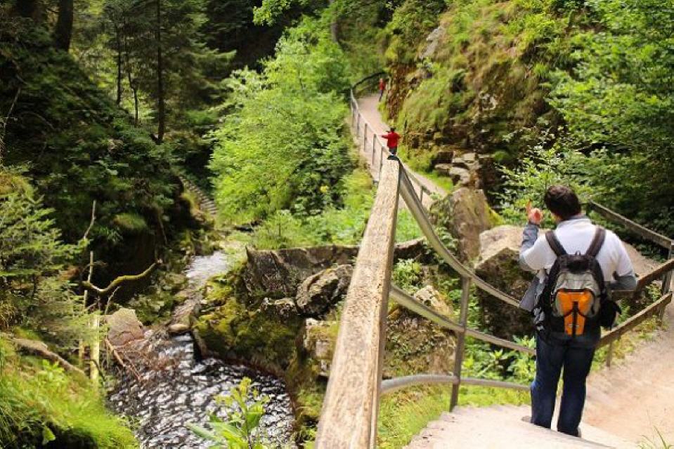 Start ist beim Parkplatz am unteren Ende der Wasserfälle. Hier befindet sich auch das Tor zum Nationalpark Schwarzwald. Sie durchsteigen nun die wildromantischen Wasserfälle, die bereits im 19. Jahrhundert mit Leitern erschlossen wurden. Zu Beginn des 20. Jahrhunderts wurde die jetzige Streckenführung mit Treppen erschlossen. Bei Hochwasser bieten diese Wasserfälle ein ganz besonders reizvolles Naturschauspiel, bei dem die Besucher an manchen Stellen auch berieselt werden. Am oberen Ausstieg folgen Sie dem Forstweg und erreichen das Ehrenmal des Schwarzwaldvereins. Von dort wandern Sie weiter an den Standort "Am Zierteich".