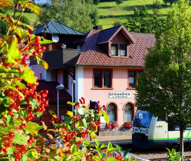Außergewöhnlich gut ist die öffentliche Verkehrsanbindung von Ottenhöfen. Zentral gelegener Bahnhof, moderne Nahverkehrszüge bringen den Gast nach Kappelrodeck und Achern, Busverbindung nach Seebach und auf die Schwarzwald Hochstraße. Das Zehn-Tälerdorf Ottenhöfen im Schwarzwald liegt zwischen Schwarzwaldhochstraße und Badischer Weinstraße, 35 km entfernt von Straßburg / Elsaß, Baden-Baden und Freudenstadt inmitten einer einzigartigen Naturlandschaft.