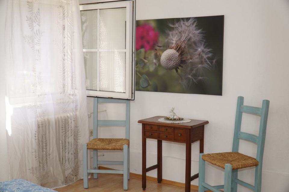 Im Erdgeschoss des Ferienhaus am Dorfbach haben Sie die Möglichkeit, ein zusätzliches Gästezimmer zu der Ferienwohnung im „Ferienhaus am Dorfbach“ oder zur „Ferienwohnung Alte Schmiede“ dazu zu buchen. Es ist ausgestattet mit einem bequemen Bett, Tisch, Stuhl und Lesebank, Schrank, Kühlschrank und Kaffeemaschine, sowie WC und Waschbecken.