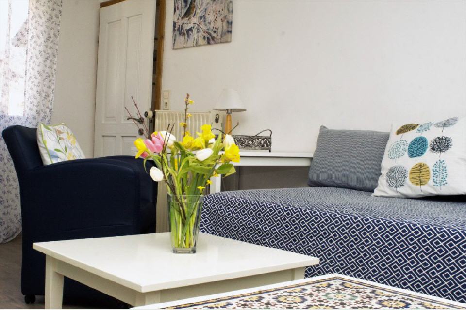 Diese wunderschöne Wohnung liegt als einzige Wohneinheit im kleinen „Leibgeding-Haus“ der Alten Schmiede. Die 76 qm große Wohnung wurde aufwändig restauriert und mit viel Liebe zum Detail eingerichtet. Die Wohnung liegt im 1. OG des kleinen 1826 erbauten Häuschen neben dem Fachwerkhaus und diente als Alterssitz der Schmiede.