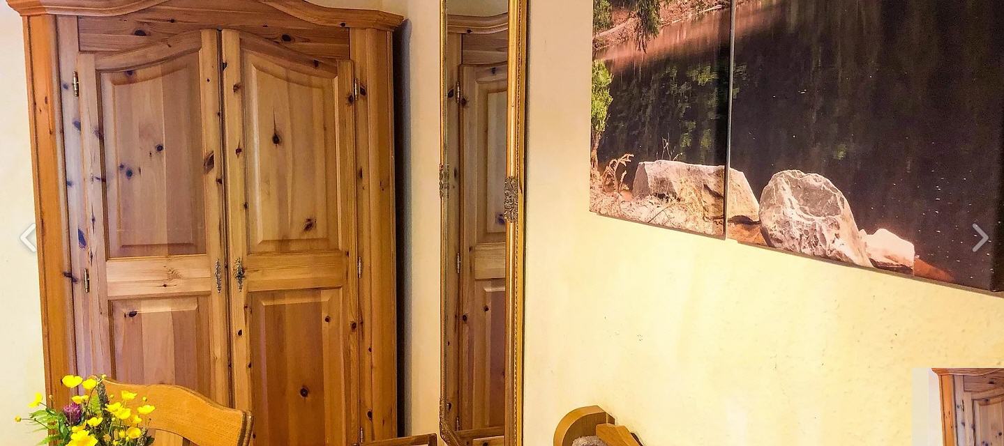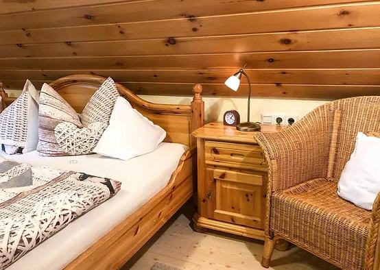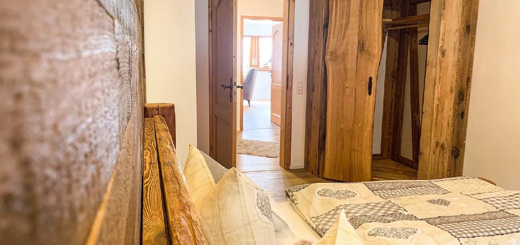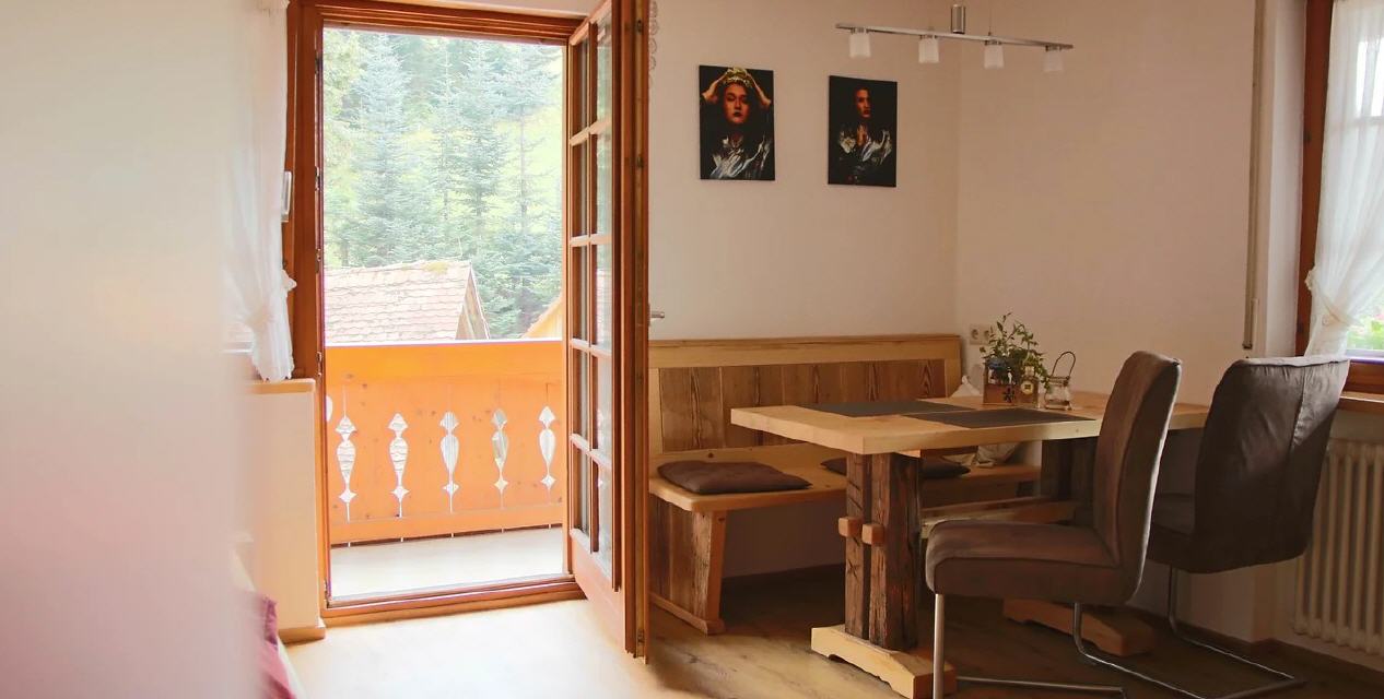 - Die "Waldesruh" hat ihren Platz im ersten Stock des Haupthauses und ist für 2 Personen liebevoll eingerichtet. Die schönen Altholzmöbel und der große Balkon machen unsere Waldesruh besonders.