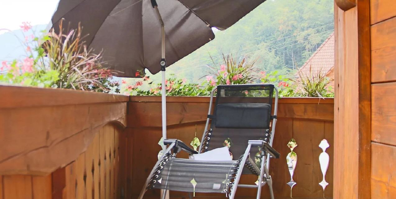 - Der Balkon bietet einen freien Blick auf Wiesen und Wälder, perfekt um den Gesang der Vögel zu lauschen.