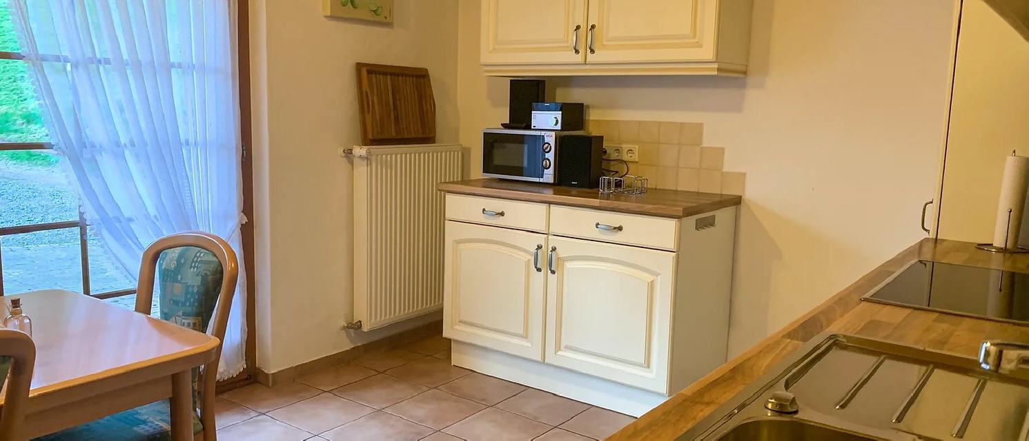 - Der Fuchsbau ist ebenerdig, befindet sich im Nebenhaus und ist für 4 Personen eingerichtet. Die große Terrasse, die nur zum Fuchsbau gehört, lädt ein für schöne Grillabende mit Blick ins Grüne.