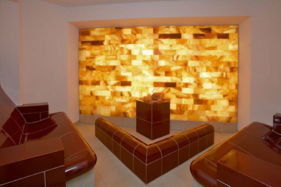 Tecaldarium mit illuminierter Himalaya-Salzsteinwand