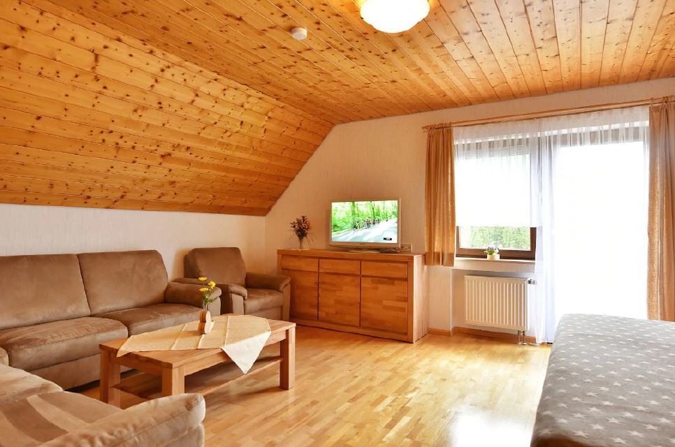 Komfortable große 4-Sterne-Ferienwohnung mit Balkon, ca. 105 qm, geeinget für 2 bis 7 Personen, inkl. Zusatzdoppelzimmer mit Dusche und WC, 3 Schlafzimmer, sonnige Alleinlage, Natur pur, ohne Durchgangsverkehr. Kommen Sie zum Wandern, zum frische Luft und Energie tanken. Sie werden Ihre/unsere Ferienwohnung lieben!