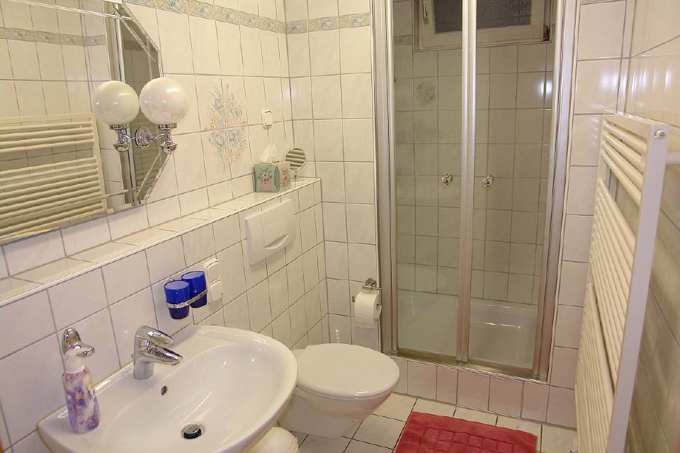 In den Schlafzimmern befinden sich Funkwecker. Die Betten sind mit modernsten, mehrfach verstellbaren Holzlattenrosten sowie mit Latexmatratzen ausgestattet. Außerdem können wir Ihnen bei Bedarf Kinderbett, Hochstuhl und Wickeltisch zur Verfügung stellen.