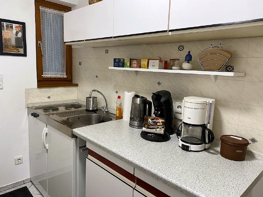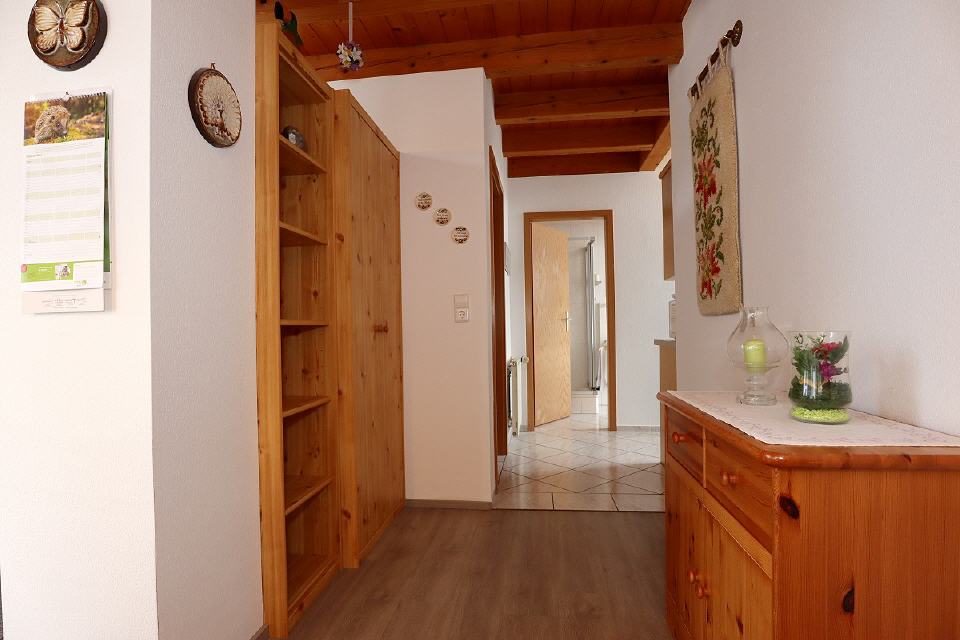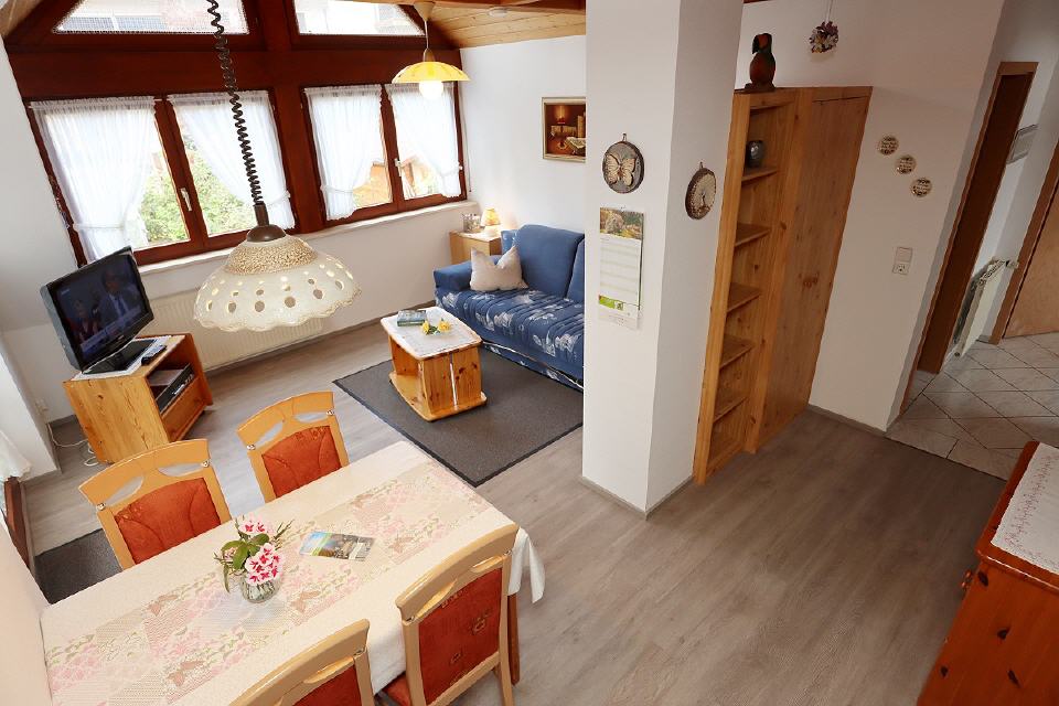 Die Ferienwohnung ist komfortabel und großzügig eingerichtet. Sie bietet Platz für 2 bis 4 Personen und hat einen Balkon mit schöner Aussicht. Sie hat einen großen, kombinierten Wohnschlafraum mit Essbereich, Sat-TV, kostenlosen WLAN-Zugang zum Internet. Das separate Schlafzimmer ist mit Bauernmöbeln eingerichtet. Dusche mit WC, Bettwäsche und Handtücher sind inklusive. Die Einbauküche ist komplett eingerichtet mit Geschirr, Besteck und Elektrogeräten.