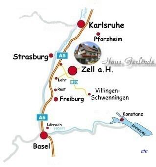 - Mit dem Auto: Über die Autobahn A5 bis Offenburg, dann auf der B33 (Richtung Villingen-Schwenningen) bis Biberach (Baden), weiter in das Harmersbachtal nach Zell am Harmersbach (Unterharmersbach).
