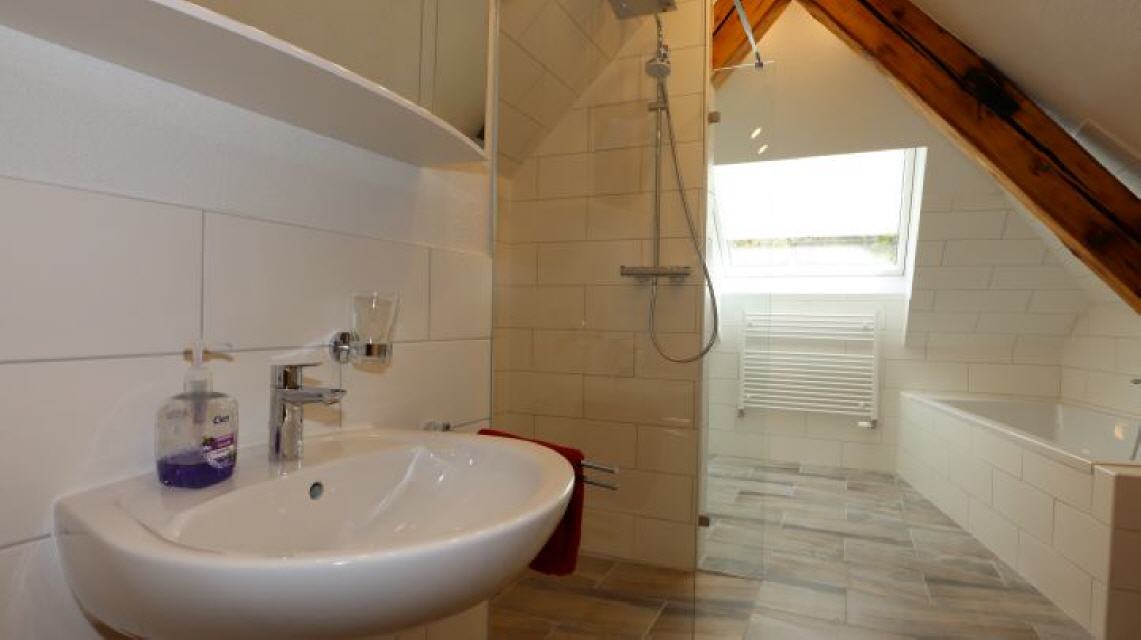 2 luxuriöse Bäder mit Badewanne, Dusche und WC